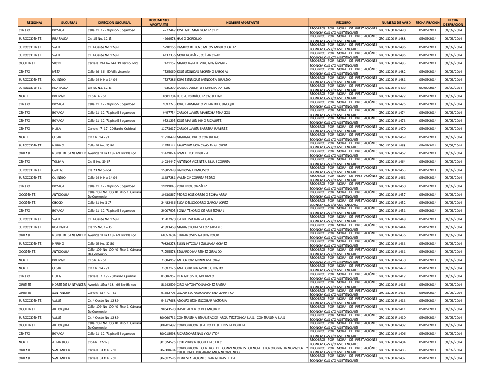 A continuación encontrarás la relación de avisos (edictos), proyectados hasta la fecha en procesos pre jurídicos de cobro adelantados por concepto de aportes en mora; también en procesos de recobros de prestaciones económicas y/o asistenciales por mora a la fecha del evento o inconsistencias administrativas.