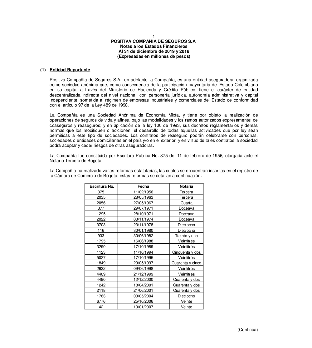 Los estados financieros de la compañía se publican de acuerdo con los establecido en el numeral 2.4 del Capítulo IX de la Circular Básica Contable 100 de 1995.