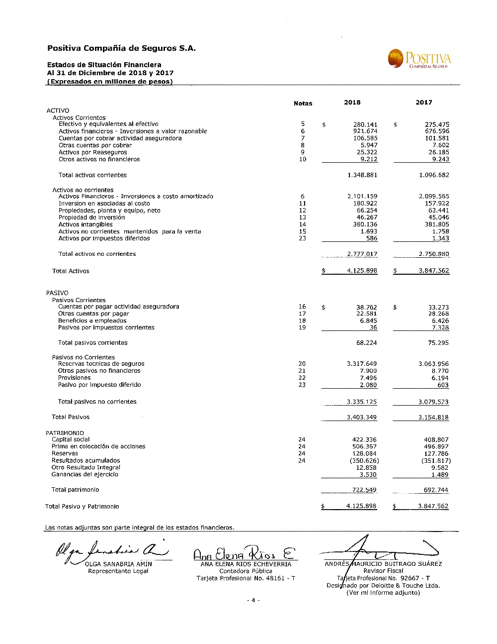 Los estados financieros de la compañía se publican de acuerdo con los establecido en el numeral 2.4 del Capítulo IX de la Circular Básica Contable 100 de 1995.
