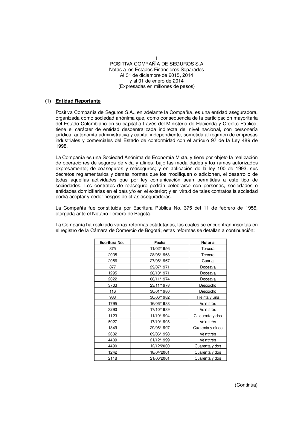 Los estados financieros de la compañía se publican de acuerdo con los establecido en el numeral 2.4 del Capítulo IX de la Circular Básica Contable 100 de 1995.