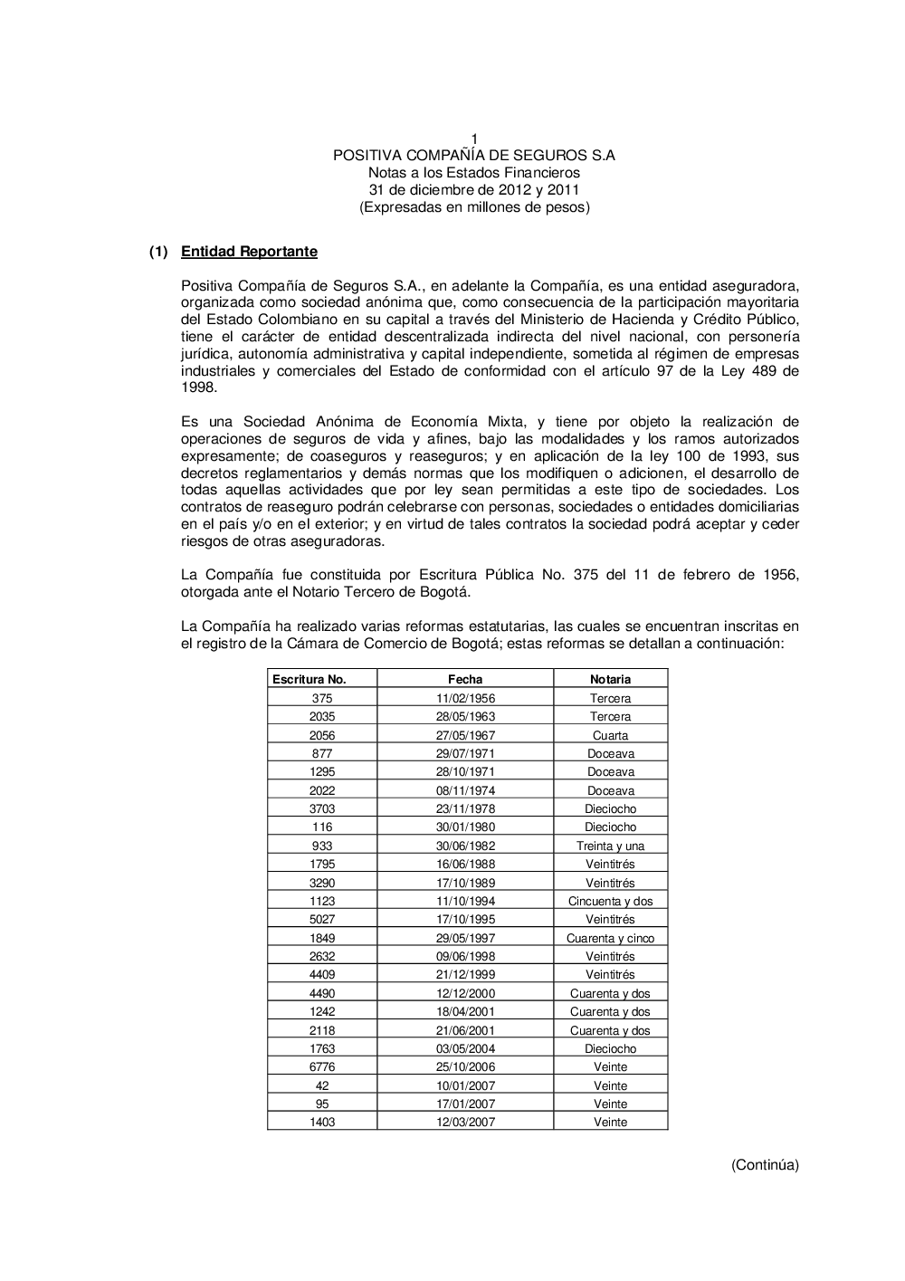 Los estados financieros de la compañía se publican de acuerdo con los establecido en el numeral 2.4 del Capítulo IX de la Circular Básica Contable 100 de 1995.