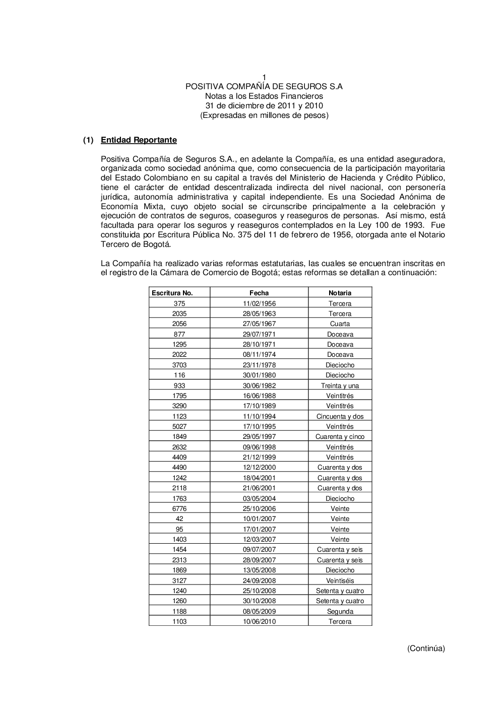 Los estados financieros de la compañía se publican de acuerdo con los establecido en el numeral 2.4 del Capítulo IX de la Circular Básica Contable 100 de 1995.