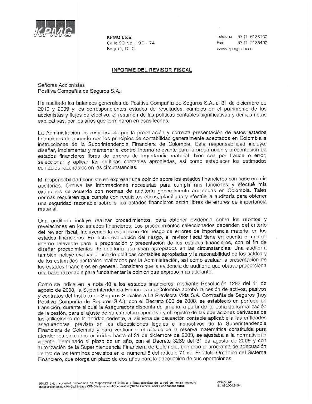 Los estados financieros de la compañía se publican de acuerdo con los establecido en el numeral 2.4 del Capítulo IX de la Circular Básica Contable 100 de 1995.