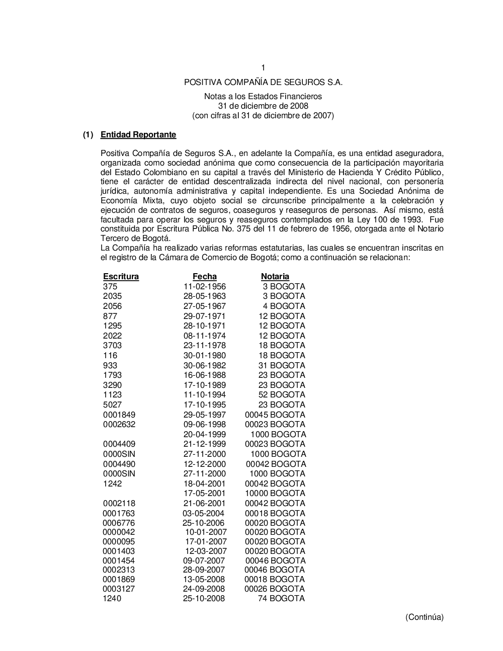 Los estados financieros de la compañía se publican de acuerdo con los establecido en el numeral 2.4 del Capítulo IX de la Circular Básica Contable 100 de 1995.
