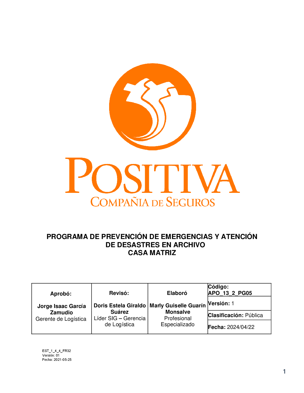 Programa Prevención Emergencias y Atención de Desastres en Archivo