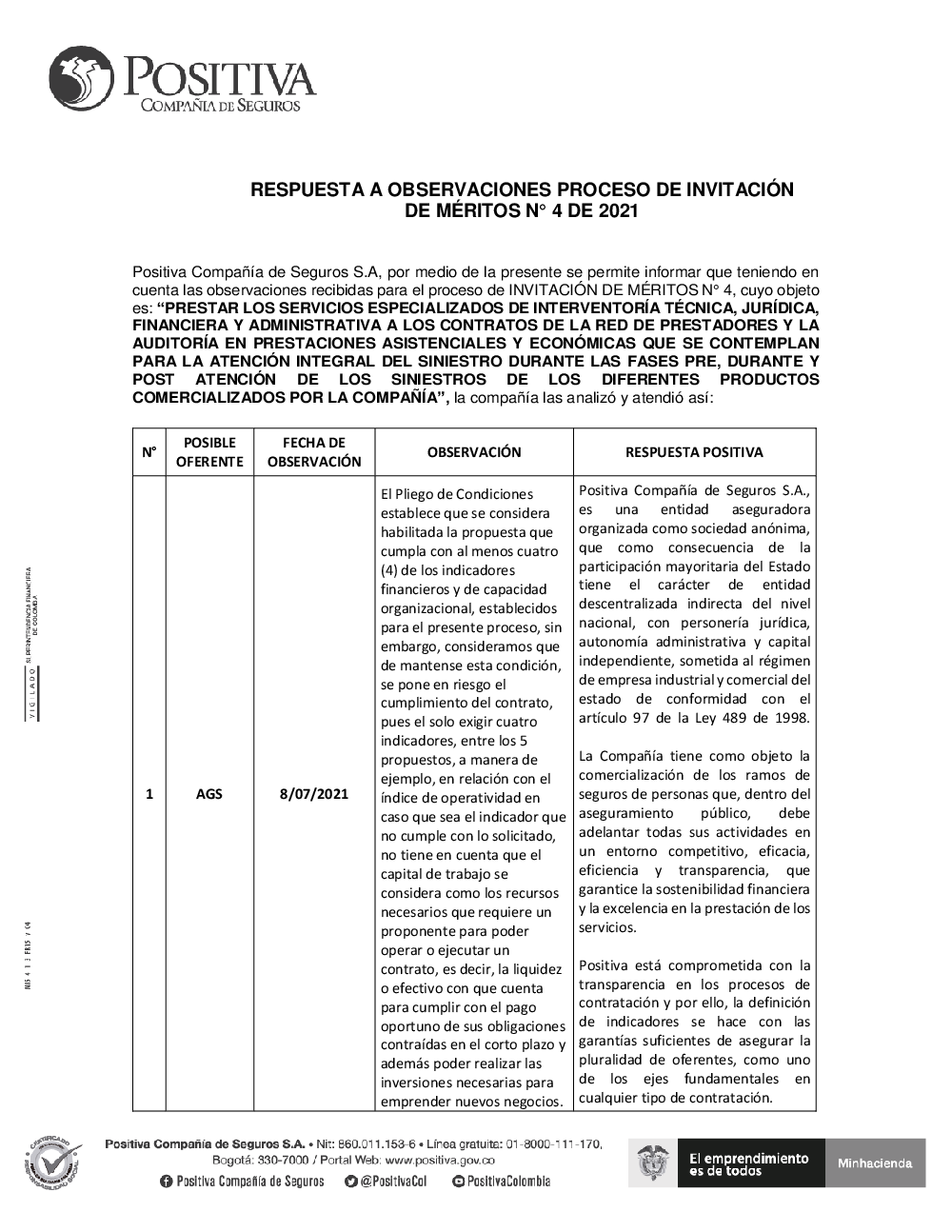 OFICIO DE RESPUESTA A OBSERVACIONES INVITACIÓN DE MÉRITOS N° 4 DE 2021.pdf