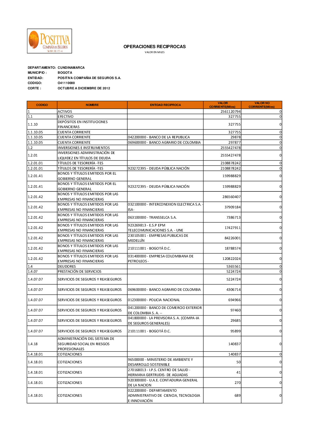 Aquí encontrarás los saldos de las transacciones u operaciones efectuadas con nuestra Compañía. Según los procedimientos establecidos sobre conciliación de operaciones reciprocas, efectuamos publicación de los saldos de las transacciones efectuadas, y que fueron reportadas según los establecido en la resolución No. 411 noviembre 29 de 2023 de la Contaduría General de la Nación.