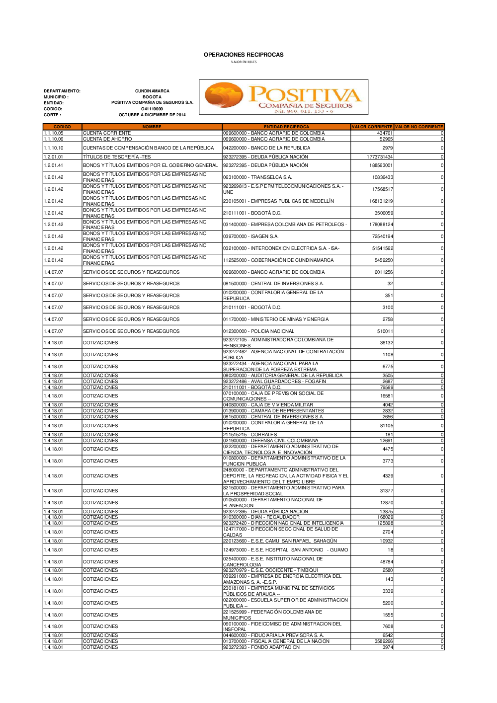 Aquí encontrarás los saldos de las transacciones u operaciones efectuadas con nuestra Compañía. Según los procedimientos establecidos sobre conciliación de operaciones reciprocas, efectuamos publicación de los saldos de las transacciones efectuadas, y que fueron reportadas según los establecido en la resolución No. 411 noviembre 29 de 2023 de la Contaduría General de la Nación.