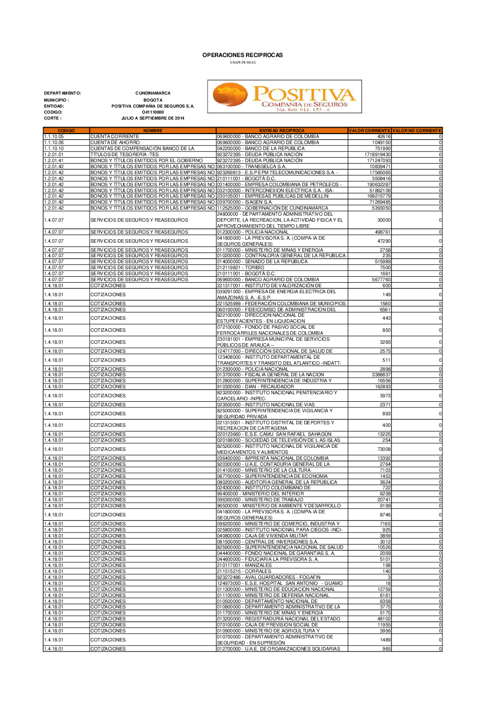 Aquí encontrarás los saldos de las transacciones u operaciones efectuadas con nuestra Compañía. Según los procedimientos establecidos sobre conciliación de operaciones reciprocas, efectuamos publicación de los saldos de las transacciones efectuadas, y que fueron reportadas según los establecido en la resolución No. 411 noviembre 29 de 2023 de la Contaduría General de la Nación.