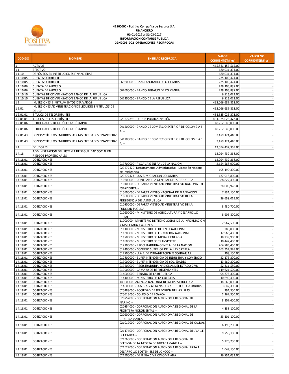 Aquí encontrarás los saldos de las transacciones u operaciones efectuadas con nuestra Compañía. Según los procedimientos establecidos sobre conciliación de operaciones reciprocas, efectuamos publicación de los saldos de las transacciones efectuadas, y que fueron reportadas según los establecido en la resolución No. 411 noviembre 29 de 2023 de la Contaduría General de la Nación.