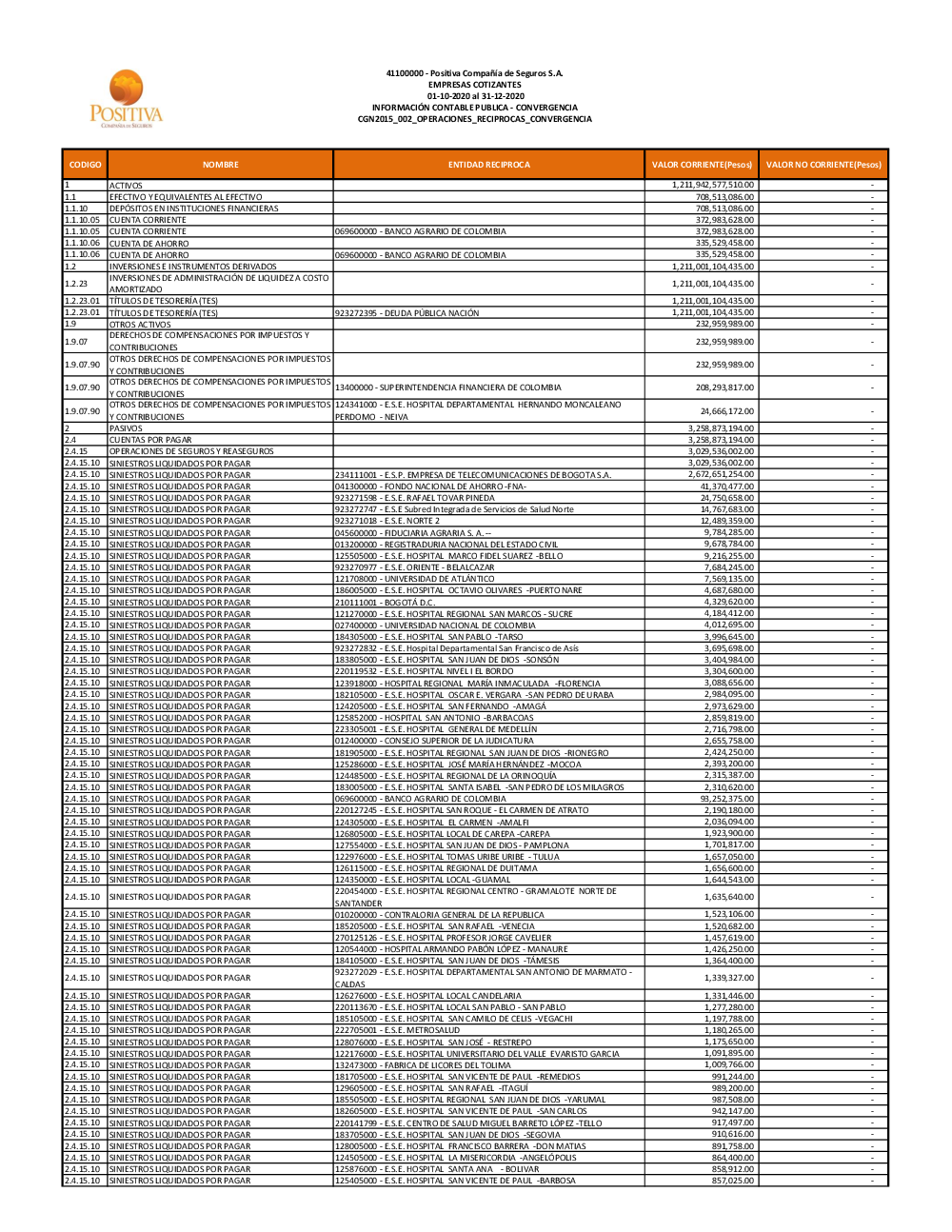 Aquí encontrarás los saldos de las transacciones u operaciones efectuadas con nuestra Compañía. Según los procedimientos establecidos sobre conciliación de operaciones reciprocas, efectuamos publicación de los saldos de las transacciones efectuadas, y que fueron reportadas según los establecido en la resolución No. 411 noviembre 29 de 2023 de la Contaduría General de la Nación.