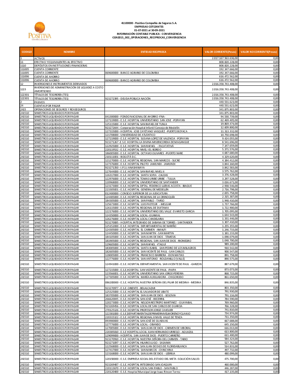 Aquí encontrarás los saldos de las transacciones u operaciones efectuadas con nuestra Compañía. Según los procedimientos establecidos sobre conciliación de operaciones reciprocas, efectuamos publicación de los saldos de las transacciones efectuadas, y que fueron reportadas según los establecido en la resolución No. 411 noviembre 29 de 2023 de la Contaduría General de la Nación.