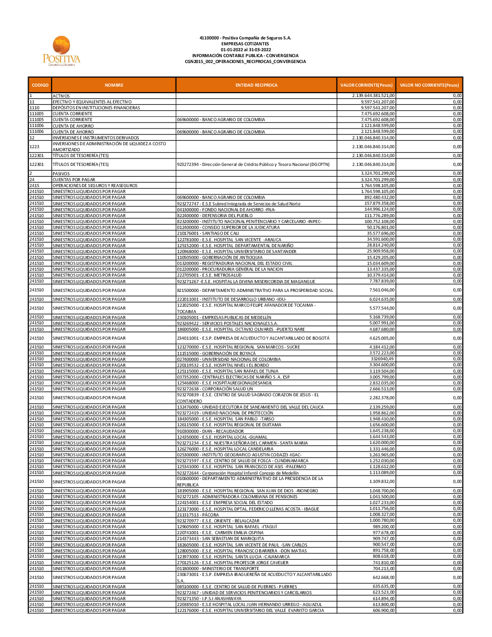 Aquí encontrarás los saldos de las transacciones u operaciones efectuadas con nuestra Compañía. Según los procedimientos establecidos sobre conciliación de operaciones reciprocas, efectuamos publicación de los saldos de las transacciones efectuadas, y que fueron reportadas según los establecido en la resolución No. 411 noviembre 29 de 2023 de la Contaduría General de la Nación.