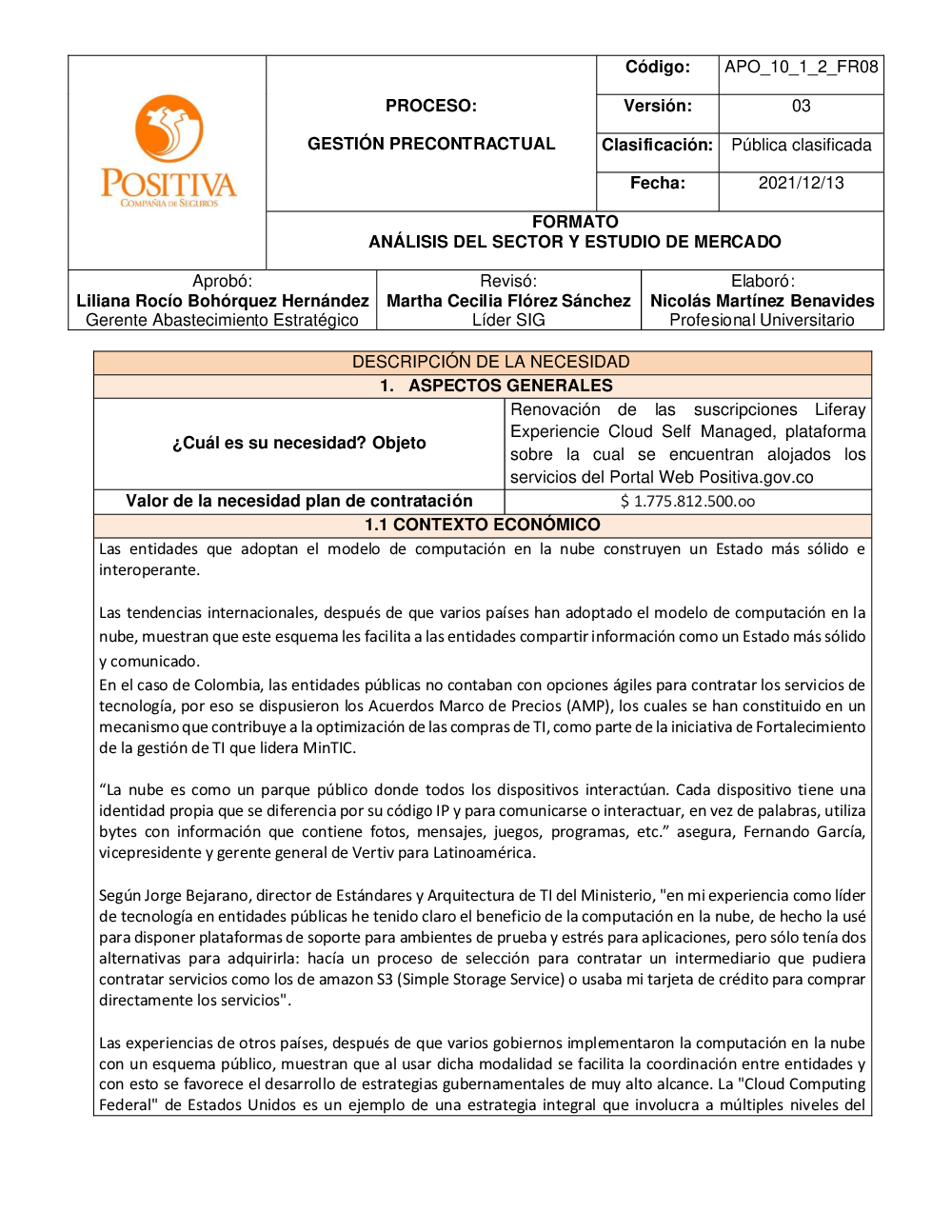 Publicación de información contractual