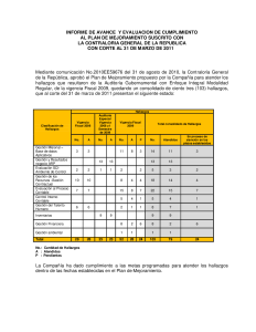 En esta sección podrás encontrar las evidencias de los diferentes planes de mejora, dando cumplimiento a las directivas presidenciales 08 de 2003 y 03 del 3 de abril de 2012 y circular externa 08 del 01 marzo 2012 del Ministerios de Hacienda y crédito público, se procede a la publicación del informe del avance al plan de mejoramiento suscrito con la Contraloría General de la República.